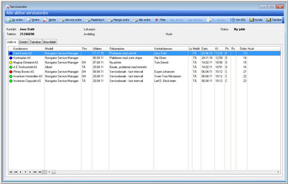 finner du en oversikt over alle innmeldte serviceordre som er aktive. Når de